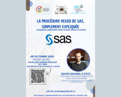 Quel que soit votre parcours ou votre domaine d’activité, vous êtes toutes et tous conviés à une présentation pratique et conviviale qui représente une excellente occasion de renforcer vos connaissances dans un cadre interactif et stimulant: La procédure MIXED de SAS, simplement expliquée – Modèles linéaires – PROC MIXED – PROC GLIMMIX.