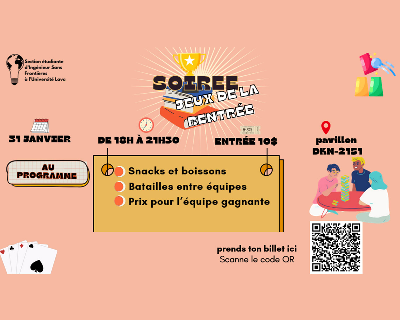L’Association Ingénieurs Sans Frontières – Section Université Laval (ISF-Laval) donne officiellement le coup d’envoi de ses activités à l’occasion de sa soirée «Jeux de la rentrée».