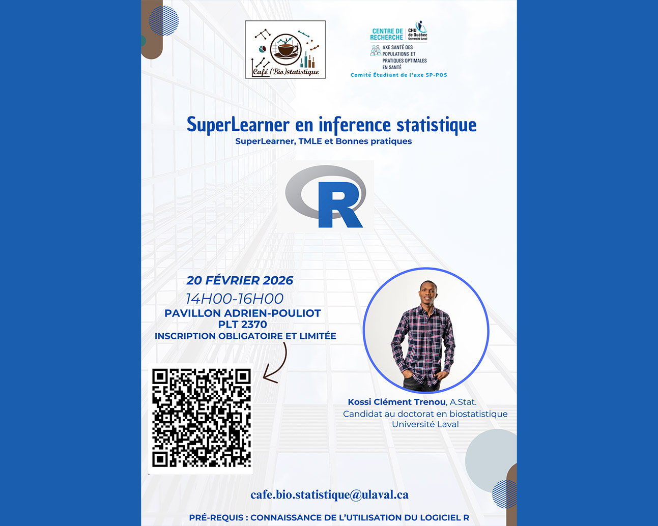 Le Café (Bio)statistique a le plaisir de vous inviter à un atelier dédié aux méthodes modernes en analyse de données, qui se tiendra le 20 février 2026 de 14h à 16h au local 2370 du pavillon Adrien-Pouliot.